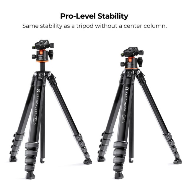 A K&F Concept Mutate sorozatú utazó alumínium állvány kompakt és hordozható testtel rendelkezik, mivel összecsukható mérete kevesebb, mint 500 mm/20", és rendkívül könnyű, 1819 g/4lbs. Összecsukható átmérője kisebb, mint egy hagyományos vizes palack térfogata. Nem számít utazás vagy munka esetén, az állvány kompakt kialakításának köszönhetően könnyen elfér bármilyen fényképezőgép táskában vagy poggyászban. Annak érdekében, hogy az állvány ugyanolyan stabilitást biztosítson, mint egy középső oszlop nélküli állvány, az állványt beágyazott rögzítő talppal tervezték, így az állvány lábai szorosan rögzíthetők, és elképesztő profi szintű stabilitást biztosítanak.