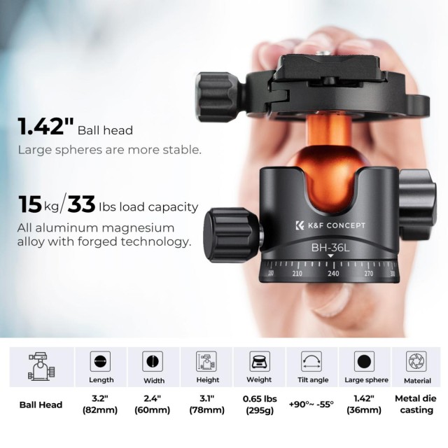 - * 【Speciális formájú kompakt kialakítás】A K&F Concept Mutate sorozatú utazó alumínium állvány kompakt és hordozható testtel rendelkezik, mivel összecsukható mérete kevesebb, mint 500 mm/20", és rendkívül könnyű 1819 g / 4 font. Összecsukható átmérője kisebb, mint egy hagyományos vizes palack térfogata. Nem számít utazás vagy munka esetén, az állvány kompakt kialakításának köszönhetően könnyen elfér bármilyen fényképezőgép táskában vagy poggyászban.