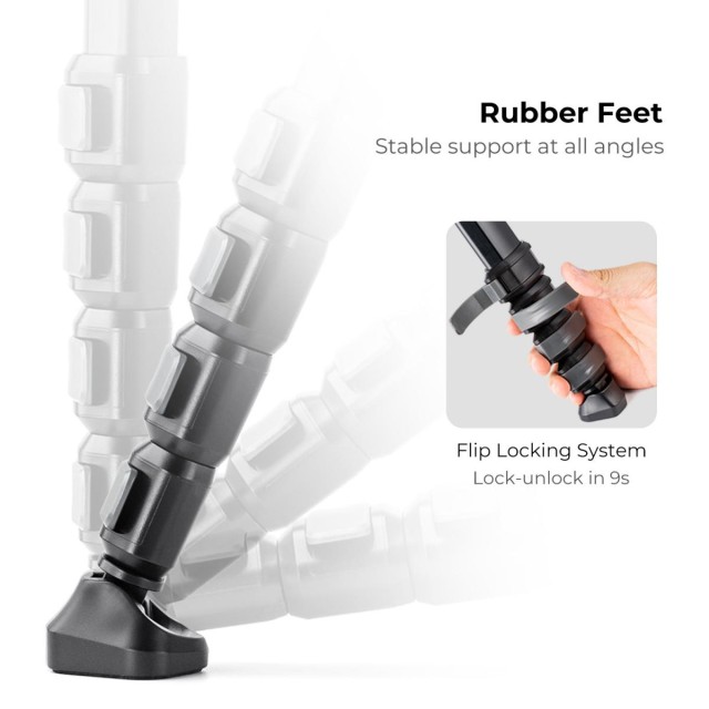 - * 【Pro-szintű stabilitás】 Annak érdekében, hogy az állvány ugyanolyan stabilitást biztosítson, mint egy középoszlop nélküli állvány, az állványt beágyazott rögzítő talppal tervezték, így az állvány lábai szorosan rögzíthetők, és elképesztő profi szintű stabilitást biztosítanak.