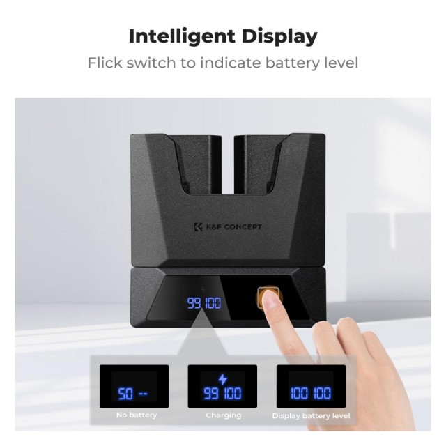 - * 【Intelligens kettős akkumulátor kijelző】A beépített intelligens kijelzővel könnyedén nyomon követheti az NP-FZ100 akkumulátorok töltöttségi szintjét. A gomb megérintésével azonnal megtekintheti az egyes akkumulátorok pontos töltöttségi százalékát, így mindig készen áll a következő felvételre.