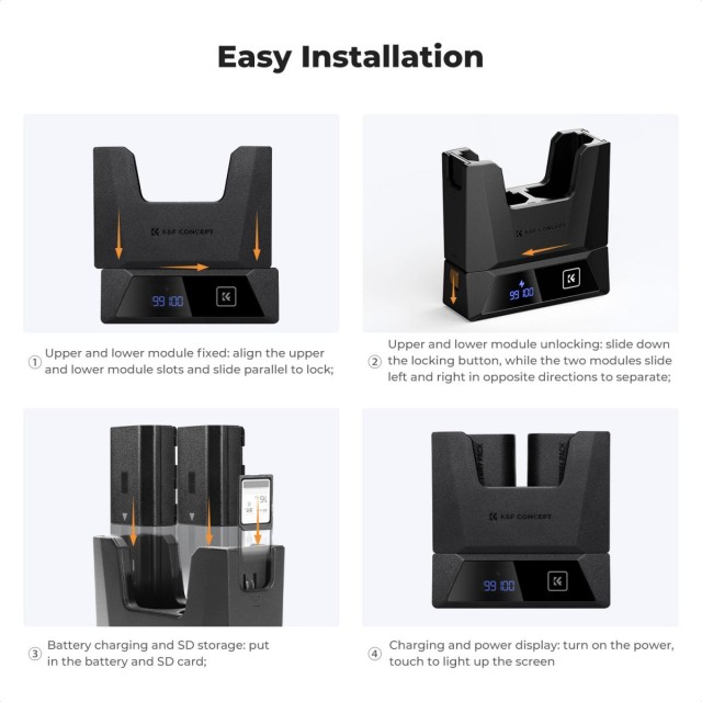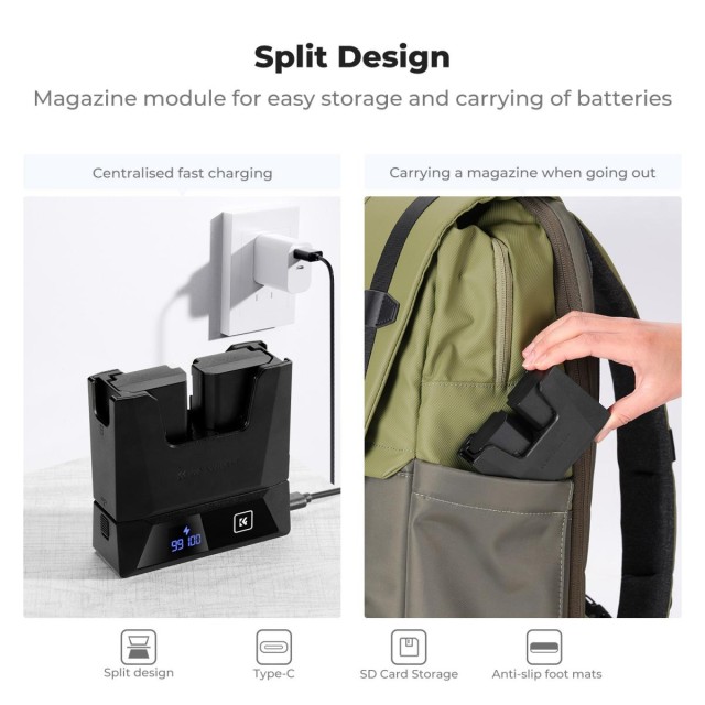 - * 【Kompakt és hordozható moduláris kialakítás】Az NPFZ100 akkumulátortöltő levehető kialakítású, így az akkumulátortartó rekesz könnyen eltávolítható és hordozható tárolótáskaként használható az akkumulátorok számára. Könnyű felépítésének és kis helyigényének köszönhetően tökéletesen alkalmas utazáshoz, és kényelmet nyújt anélkül, hogy extra helyet foglalna.