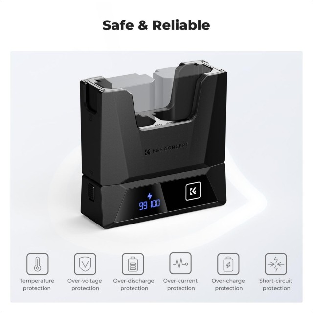 - * 【Ultimális biztonság és kényelem】Töltsön magabiztosan a több beépített biztonsági funkciónak köszönhetően, beleértve a túltöltés, túlmelegedés és rövidzárlat elleni védelmet. Ráadásul a kétnyílású NPFZ100 akkumulátortöltő kényelmes SD-kártya tárolóval rendelkezik, hogy tartozékait rendezetten és biztonságban tarthassa utazás közben.