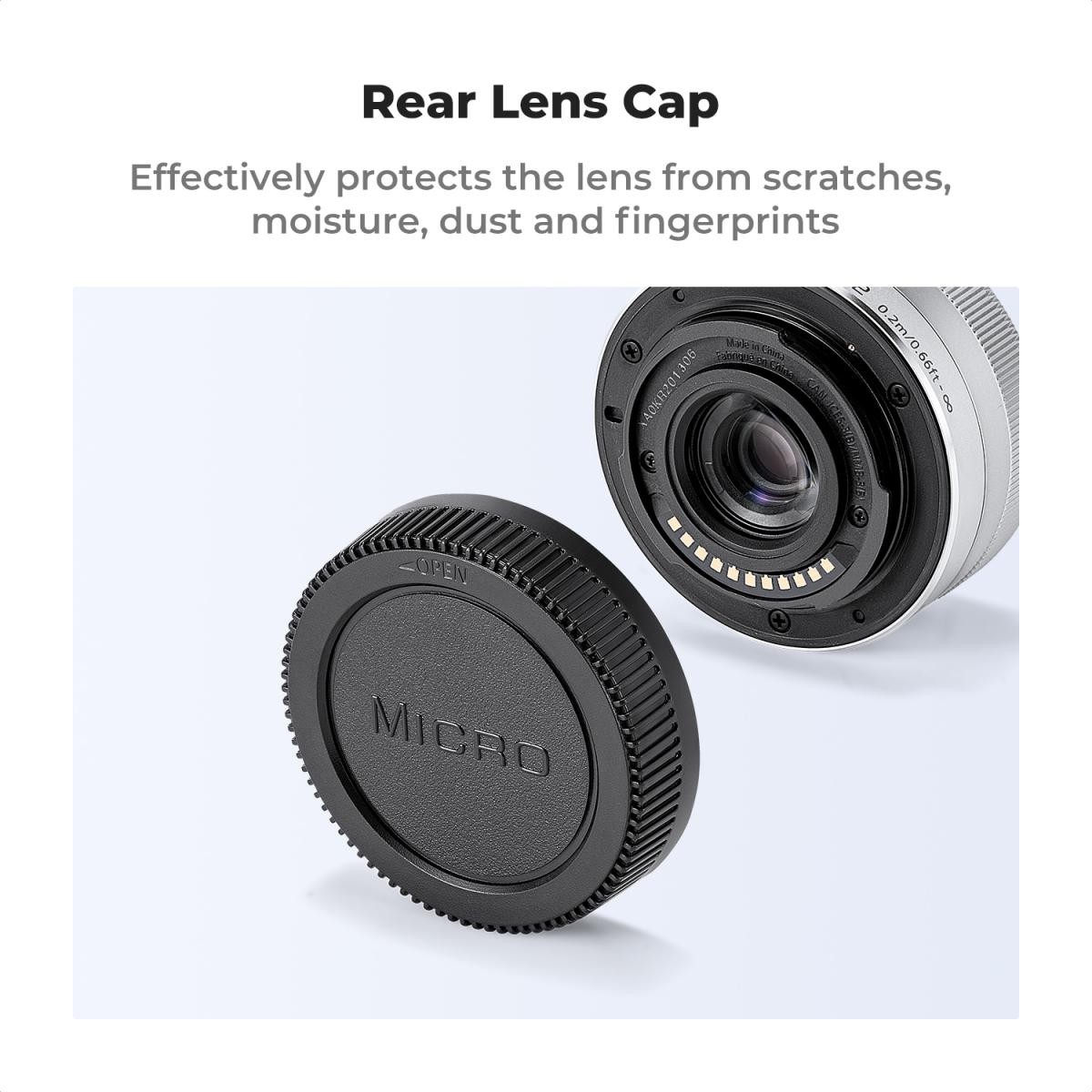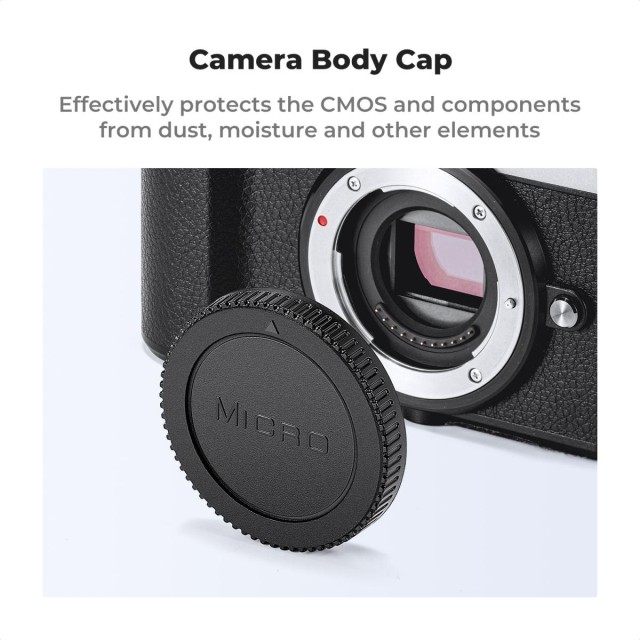 K&F Concept Olympus M4/3 védelmi készlet: 2 vázfedél, 2 objektív hátlap, 2 vakupapucs fedél + tisztító kendő – tartós ABS, por- és vízálló, tökéletesen illeszkedik az Olympus M4/3 fényképezőgépekhez.