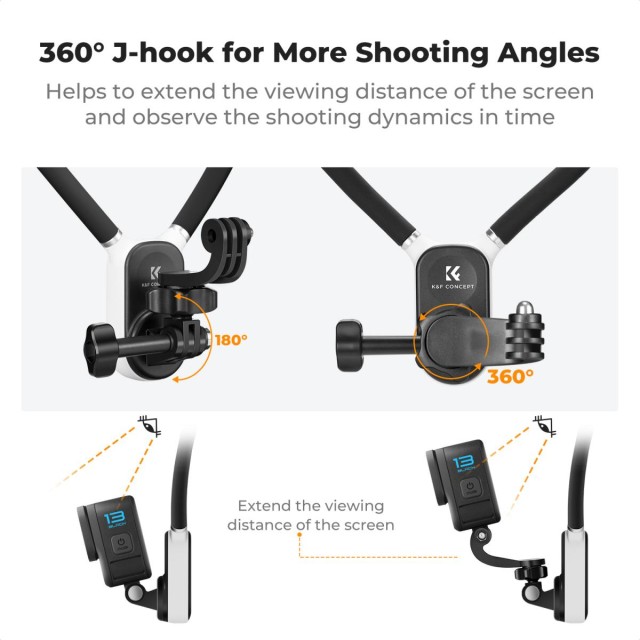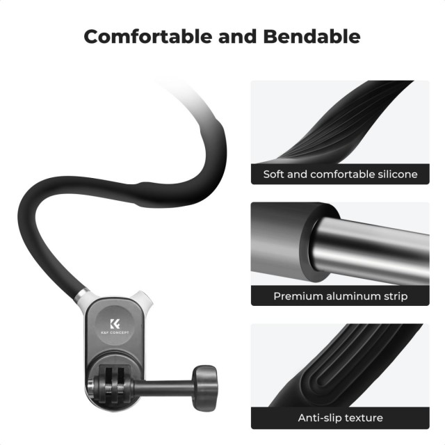 - * 【24 hüvelykes hajlítható és állítható anyag】: kényelmes, hajlítható szilikon alumínium. Mérsékelt puhaság és keménység, 60 cm (24 hüvelyk), a vlog tartó rugalmasan formázható a nyakmérethez, és könnyen elrakható.