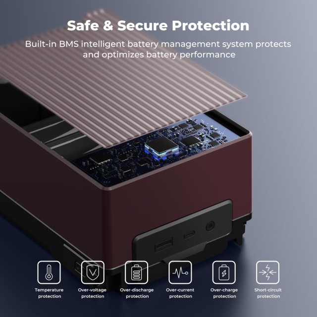 Biztonságos és megbízható: A V Mount akkumulátor kiváló minőségű márkás akkumulátorcellákat használ, az intelligens BMS rendszer többféle védelmet biztosít, beleértve a túláram-, rövidzárlat-, túlmelegedés- és túlfeszültség-védelmet