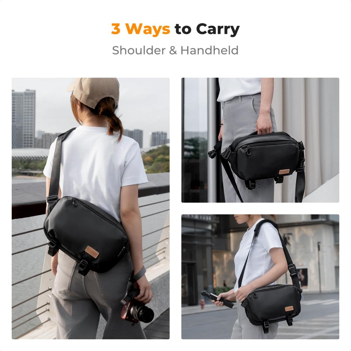 A K&F Concept Alpha Camera Sling Bag multifunkcionális hordozási lehetőségeket, robusztus védelmet és átgondolt szervezést kínál a mozgásban lévő fotósok számára.332215 cm(13,1"*8,8"*6") méretével és bőséges 10 literes űrtartalmával kényelmesen elfér benne egy DSLR/tükör nélküli fényképezőgép és két objektív, így ideális mind professzionális fotózásokhoz, mind a mindennapi utazásokhoz. Rugalmas kialakításának köszönhetően válltáskává, kereszt válltáskává, deréktáskává, mellkasi táskává vagy hagyományos kézitáskává alakítható, így különböző hordozási preferenciáknak és tevékenységeknek is megfelel.