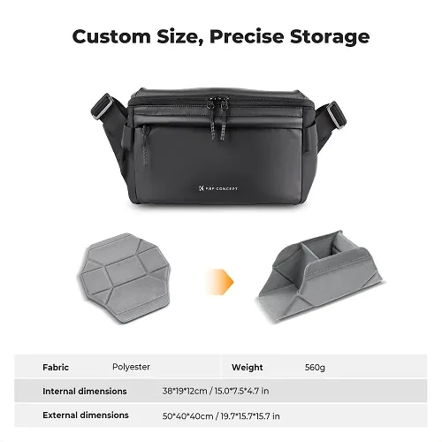 A K&F Concept sokoldalú Nature Wander Sling Bag táska időjárásálló nylonból készült, és állítható belső elválasztókkal rendelkezik a személyre szabott tároláshoz. A pánt állítható, így kényelmesen illeszkedik. Állványrögzítő pántokkal és vízpalack zsebbel rendelkezik.