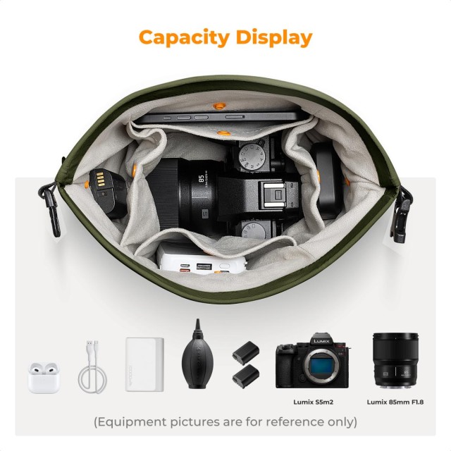 Egy kamera és egy objektív tárolására alkalmas. Változatosan használható válltáskaként, kereszt válltáskaként, kézitáskaként vagy belső bélésként. Könnyű és stílusos, roll-top zárral. A modern dizájn és a biztonságos roll-top zár kombinációja további védelmet nyújt.