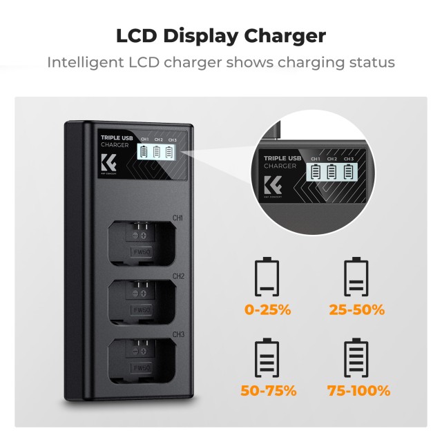 Akár a stúdióban, akár egy szabadtéri kaland során örökíti meg a pillanatokat, a K&F Concept töltő gondoskodik arról, hogy az akkumulátorok mindig áram alatt maradjanak és használatra készen álljanak.