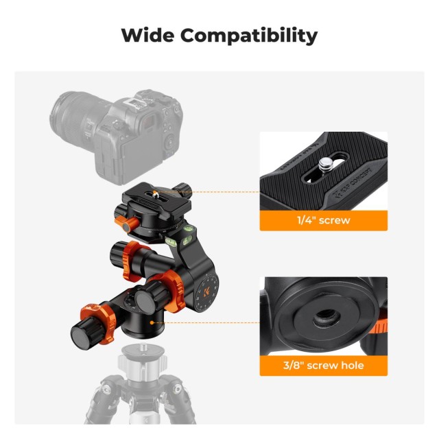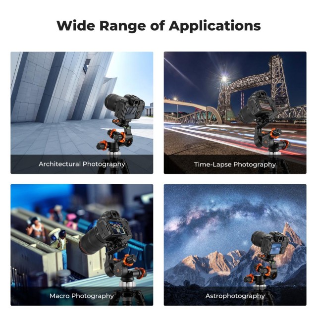 A KF31.127 háromirányú fogaskerekes állványfejjel tökéletes keretezést érhet el. Makró-, asztrofotózás és kereskedelmi felvételekhez tervezve, mikrométeres beállító gombokkal, 4 vízmértékkel és CNC-megmunkált alumíniummal rendelkezik, ami rendkívül sima, stabil irányítást biztosít. Akár 6 kg-os terhelést is elbír, és 360°-os panorámás forgatásával dinamikus kompozíciókat tesz lehetővé. Ideális azoknak a fotósoknak, akik pontosságot és gyorsaságot igényelnek.