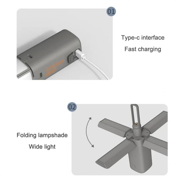 * [Akasztós kialakítás] A kempingvilágítás saját kampóval rendelkezik, kényelmes a sátrakba, faágakba, hátizsákokba stb. történő felakasztáshoz. Éjszakai fényként vagy hordozható fényként is hordozható. Kézben tartható vagy függőlegesen elhelyezhető kempingvilágításként, vészvilágításként is, többféle környezetbe is alkalmas.
