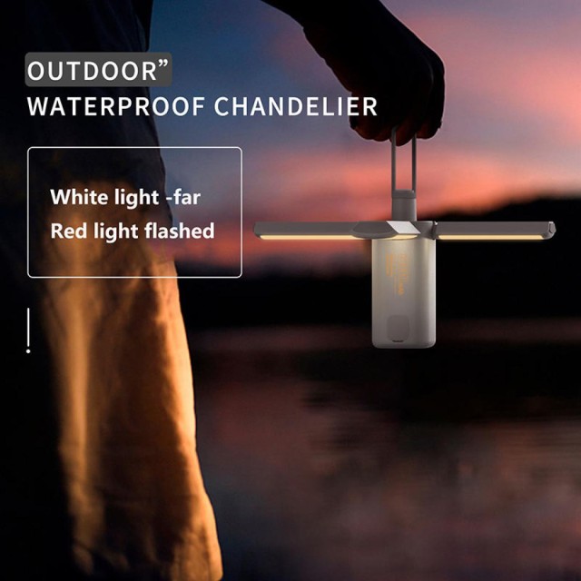 * [4 fénymód ]A kempingvilágítás 4 fénymóddal rendelkezik, meleg meleg fény, lágy hideg fehér fény, nagy hatótávolságú hideg fehér fény vagy villogó piros fény. Kettős hatásmód: fáklyafény, világító fény, gyorsan és könnyen váltogatható. Szabad választás különböző környezetekhez, ideális szabadtéri tevékenységekhez, például kempingezéshez, túrázáshoz, halászathoz vagy késő esti tornácvilágításhoz.