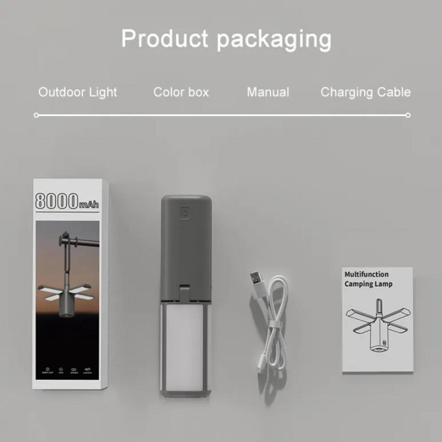 * [Hosszú élettartam ]kemping lámpa beépített 8000mah nagy kapacitású belső akkumulátorral, 11h gyenge fényben és körülbelül 3,5h erős fényben, kültéri vészhelyzeti mobil áramforrásként is használható, lehetővé téve, hogy vészhelyzet esetén gyorsan töltse fel mobiltelefonját, iPhone-t, táblagépét, egyéb eszközeit a töltőkábelen keresztül.