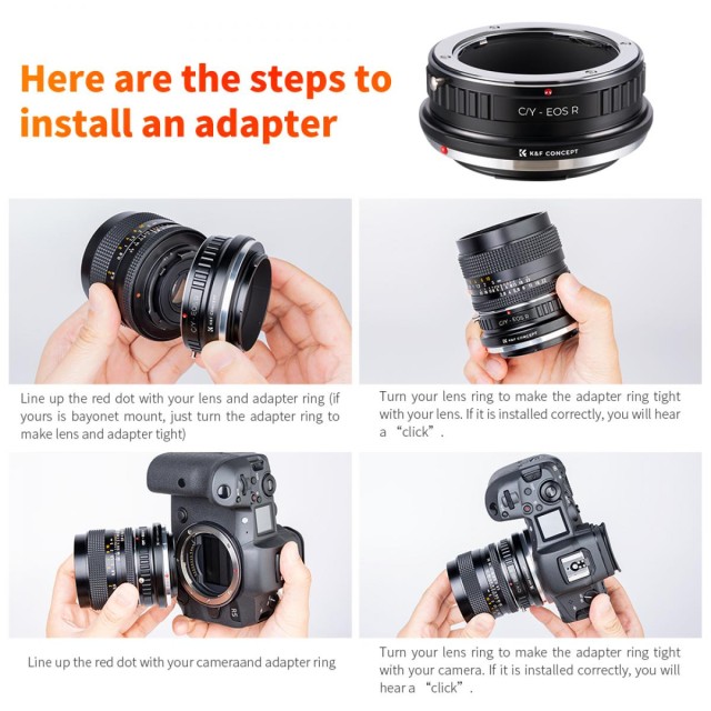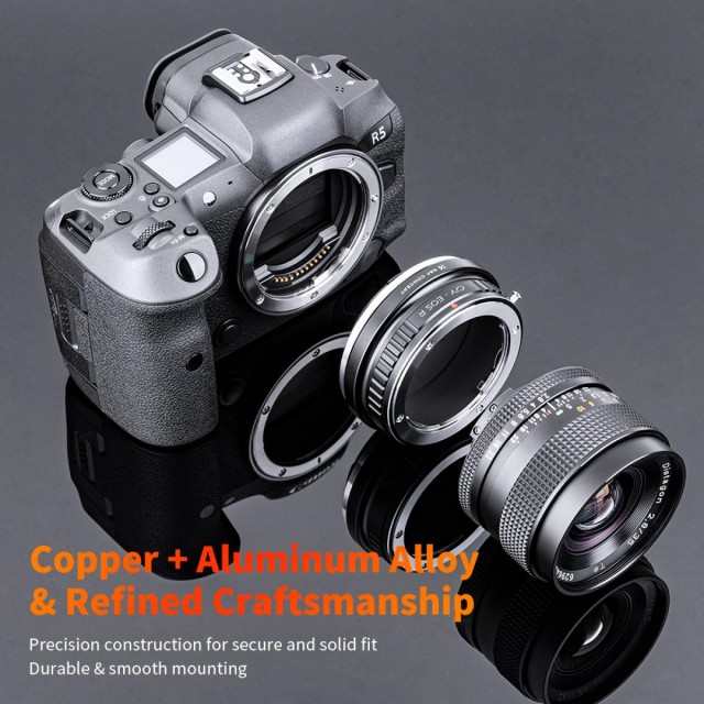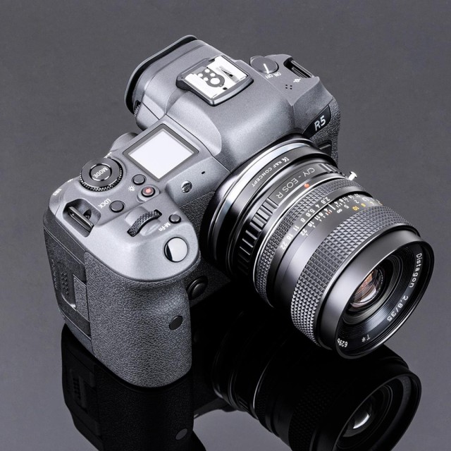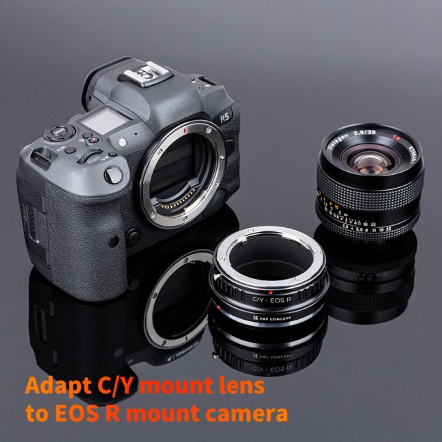 A K&F Contax Yashica – Canon EOS R objektívadapter lehetővé teszi a Contax/Yashica bajonettes objektívek használatát a Canon EOS R tükör nélküli fényképezőgépeken. Tartós sárgaréz és alumínium szerkezettel, precíz kézi működtetéssel és végtelen fókusz támogatásával rendelkezik.