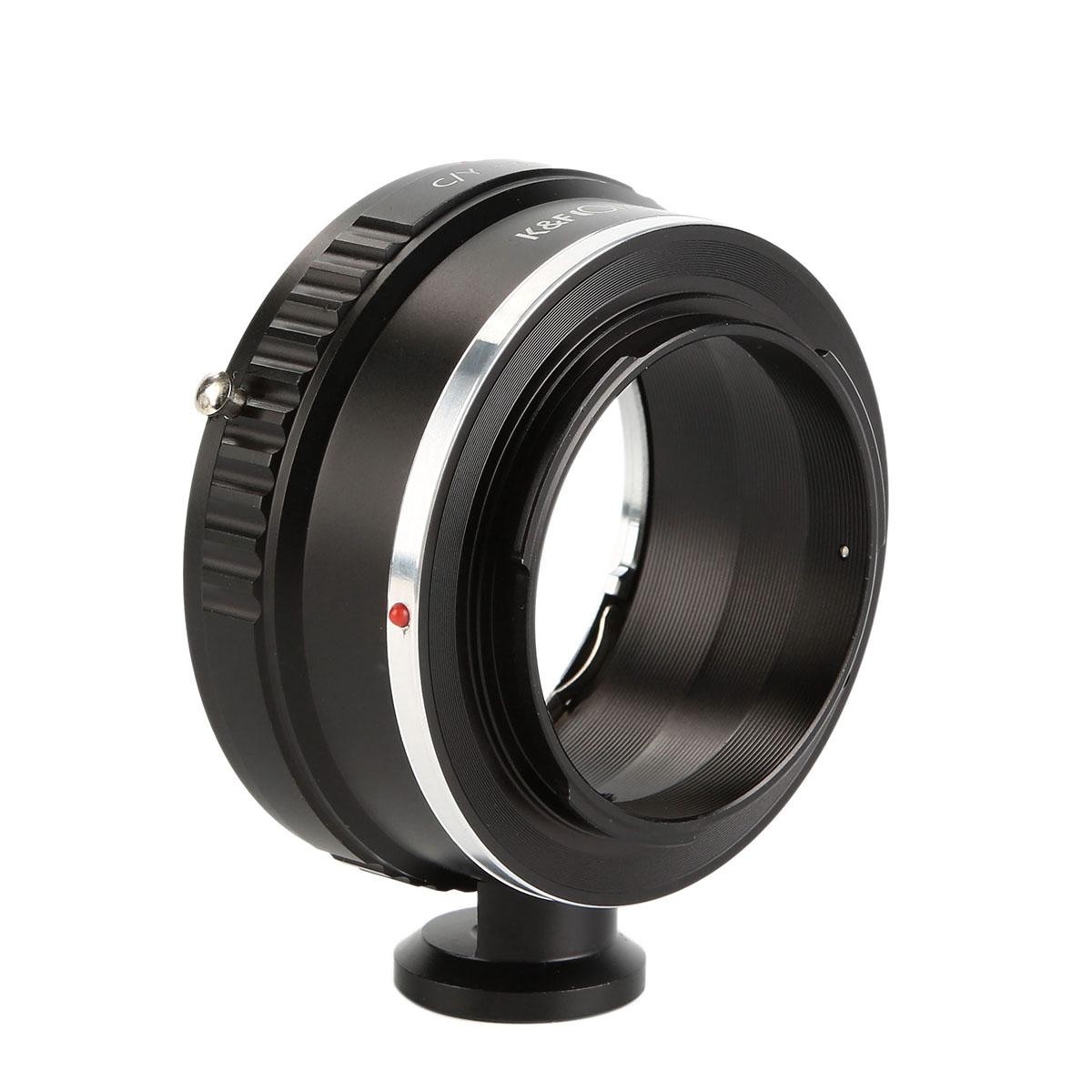 A K&F Contax/Yashica–Sony E objektívadapter állványcsatlakozóval lehetővé teszi a C/Y-bajonettes objektívek használatát Sony E-bajonettes tükör nélküli fényképezőgépeken. Sárgarézből és alumíniumból készült, stabil kézi működtetést biztosít, támogatja a végtelen fókuszt, és tartalmaz egy állványcsatlakozót a nehezebb objektívekhez.