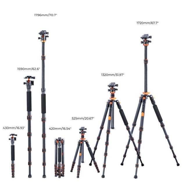 - * 【Rugalmas fényképezés】A K&F Concept D255C4+BH-28L szénszálas állványok különféle fényképezési stílusokhoz használhatók, a speciálisan tervezett gömbfej 360°-ban forgatható, a fordított fényképezés pedig lehetővé teszi statikus tájképek alacsony szögből történő fényképezését, így csodálatos fényképezési élményt nyújt.
