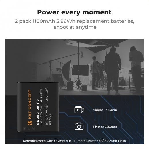 Teljes dekódoló akkumulátor, kompatibilis a Ricoh fényképezőgépekkel GR III, GR III HDF, GR IIIx HDF, GR IIIX, GR IIIX, WG-6 DB-110 modell akkumulátorral, kompatibilis az Olympus TG7/6/5/4 fényképezőgépekkel is Li-90B/Li-92B akkumulátorral.