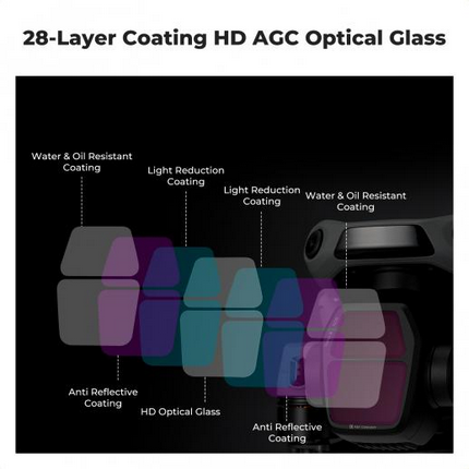 A HD optikai üvegből és 28 réteg NANO bevonatból készült szűrők kiváló tisztaságot biztosítanak, miközben víztaszító, karcálló és olajállóak a tartósság és megbízhatóság érdekében. Könnyűek és biztonságosak, szigorúan teszteltek, hogy fenntartsák a kardán teljesítményét és biztosítsák a drón stabil működését.