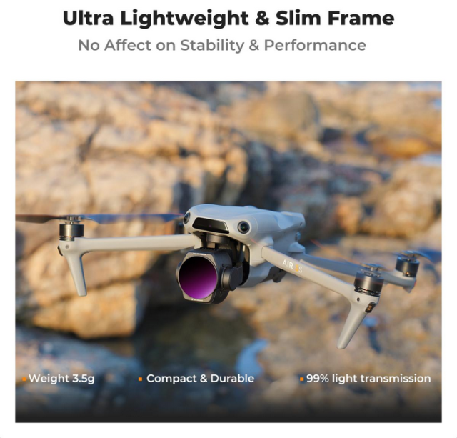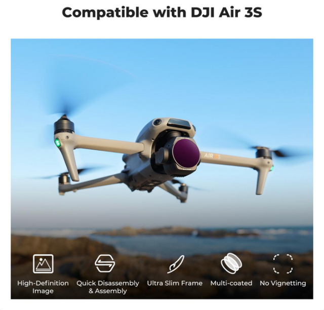 K&F DJI AIR 3S 4db szűrő készlet: Kétkamerás rendszerekhez tervezett ND8&PL, ND16&PL, ND32&PL, ND64&PL szűrők. Érje el a pontos expozíciószabályozást, minimalizálja a tükröződéseket és könnyedén javítsa a képminőséget.
