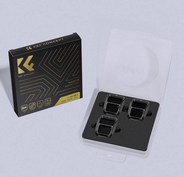 A K&F DJI Air 3 szűrőkészlet CPL, ND8 és ND16 szűrőket tartalmaz, amelyeket a DJI Air 3 felhasználók számára a videó- és képminőség javítására terveztek. A HD AGC optikai üvegből készült szűrők 28 rétegű többrétegű bevonattal rendelkeznek a tartósság és a könnyű tisztíthatóság érdekében. A könnyű és gimbal-biztos készlet tökéletes a tükröződés csökkentésére és a záridő szabályozására különböző fényviszonyok mellett.