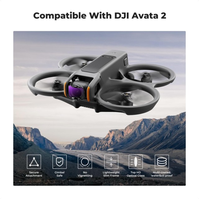 A K&F Concept legújabb 4 darabos ND szűrő készlete kifejezetten a DJI Avata 2 számára készült, amely tartalmazza az ND8, ND16, ND32 és ND64 szűrőket. Jellemzői ultrakönnyű, biztosítja a drón gimbal biztonságos, és készült top optikai üveg, hogy segítsen reprodukálni kompromisszumok nélküli képek, ez egy értékes kiegészítője a droneshot eszköztár.