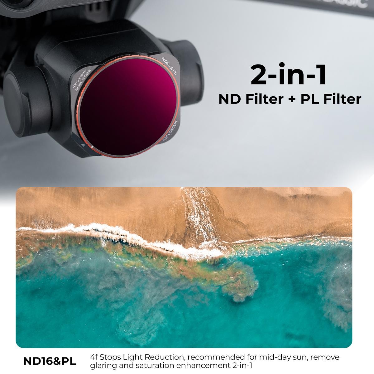 A DJI Mavic 3 Classic számára kifejezetten tervezett K&F Concept ND16 & PL szűrőkét alapvető hatást integrál egyetlen szűrőbe. Az ND16 funkció 4 fokozatban csökkenti a bejövő fényt, így ideális fényes nappali felvételekhez, és jobb ellenőrzést biztosít a zársebesség és az expozíció felett. A beépített CPL (polarizáló) segít minimalizálni a nem fémes felületek, például a víz és az üveg tükröződéseit és vakításait, miközben javítja a színtelítettséget és a kontrasztot, így élénkebb légi felvételeket eredményez.