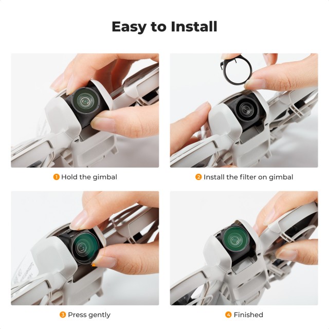 A szuperkönnyű szerkezettel tervezett szűrő zökkenőmentesen illeszkedik a DJI NEO gimbaljához anélkül, hogy befolyásolná az egyensúlyt vagy a teljesítményt. A bepattintható kialakítás egyszerű telepítést és eltávolítást biztosít, a befeketített perem pedig csökkenti a kóbor visszaverődéseket, így még kihívást jelentő fényviszonyok mellett is kiváló minőségű képalkotást tesz lehetővé. A lencse érintetlenül tartásához egy tisztító kendőt mellékelünk.