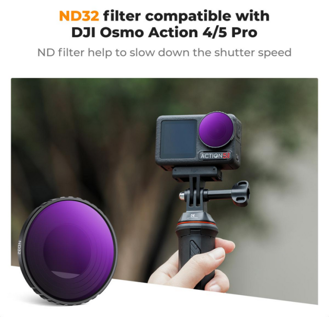 Javítsd ki felvételeidet a K&F ND32 szűrővel a DJI Osmo Action 4/Osmo Action 5 Pro kamerákhoz. Ez a nagy felbontású objektív 5 fokkal csökkenti a fényt, tükröződésmentes bevonattal rendelkezik, és tartós, vízálló védelemmel biztosítja a kiváló képminőséget.