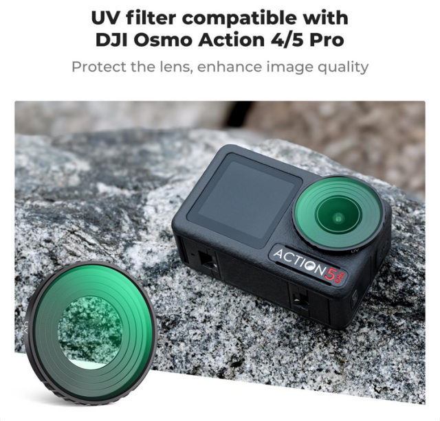 Tökéletes a szabadtéri kalandorok számára, ez az UV-szűrő egy sokoldalú kiegészítő, amely védi és fokozza a DJI Osmo Action 4/5 Pro teljesítményét minden környezetben.