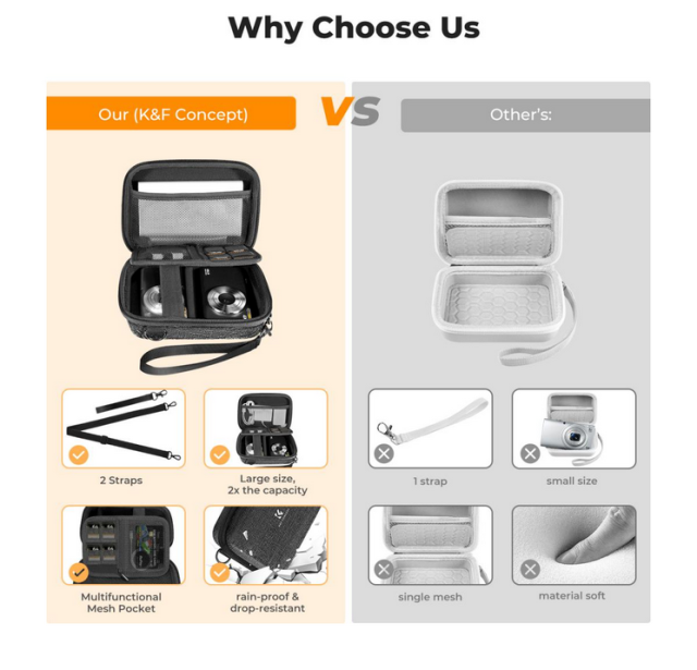 A K&F EVA Box a fényképezőgép és az elektronikus eszközök végső védelme, amely EVA anyagból készült, amely vízálló, ütésálló, porálló és csúszásgátló tulajdonságokkal rendelkezik. Ez a tartós táska gondoskodik arról, hogy felszerelése biztonságban maradjon utazások vagy mindennapi kalandok során, miközben stílusos és funkcionális kialakítást kínál.