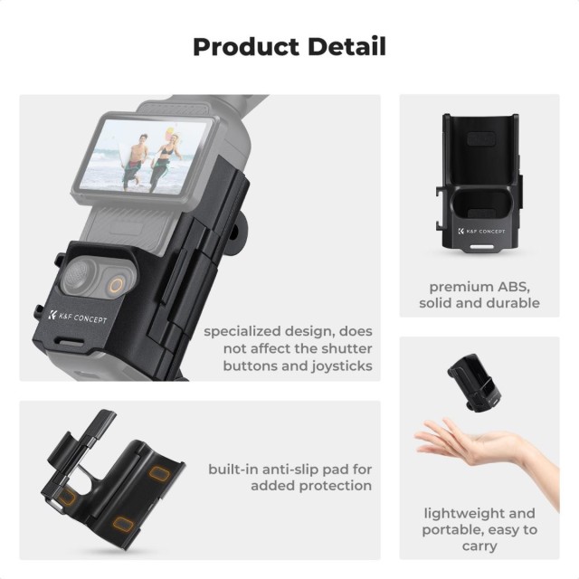 Bővítő adapter rögzítés kompatibilis a DJI Osmo Pocket 3-mal, kibővített rögzítőkonzol keret hidegcipő rögzítéssel / 1/4" csavarfurattal, illeszkedik az akciókamera portjához. A K&F Concept bővítő adapter kompatibilis a DJI OSMO Pocket 3-mal. Könnyű, tartós és segít megvédeni a Pocket 3-at a karcolásoktól anélkül, hogy befolyásolná a töltést és a működést.