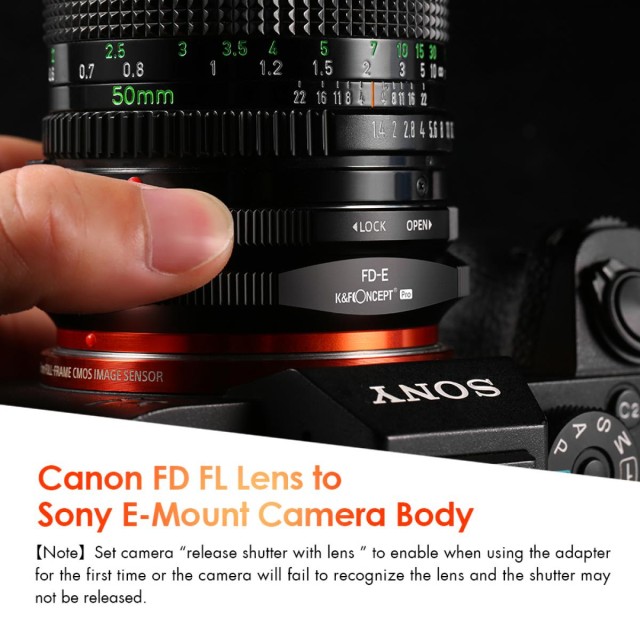 * 【 Funkció】A Canon FD vagy FL Mount objektíveket Sony E-bajonettes tükör nélküli fényképezőgépekhez rögzítheti.