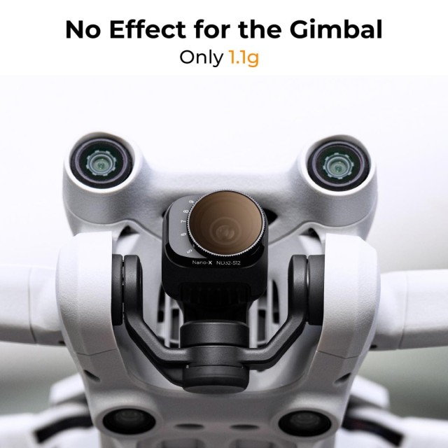 DJI Drone Mini 3 Pro & Mini 3 Variable ND32-ND512 szűrő egyoldalas tükröződésmentes zöld fóliával. kifejezetten a DJI Mini 3 Pro-hoz tervezték. Csökkentse 5-9 f-stopot a kívánt expozíció eléréséhez változó fényviszonyok mellett, alkalmas világos és napsütéses nappali fényhez.