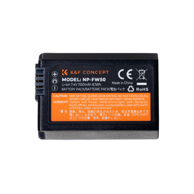 A K&F Concept fényképezőgép akkumulátorok, mint például ez a Sony FW-50-nek megfelelő, lítium-ionos akkumulátor-kémiával készülnek, a biztonságos, megbízható teljesítmény érdekében. A lítium akkumulátorok használatának előnyei közé tartozik, hogy nincs "memóriahatásuk". Ez az, amikor egy akkumulátor lemerül, és ezt követően soha nem képes feltölteni a teljes kapacitását. Akkumulátoraink a CE és RoHS követelmények szigorú kritériumainak megfelelő tanúsítvánnyal rendelkeznek, ami tovább garantálja biztonságukat és az Ön nyugalmát. Ezekre az akkumulátorokra 1 év garanciát vállalunk, hogy megvédjük Önt a gyártási hibáktól vagy hibáktól.