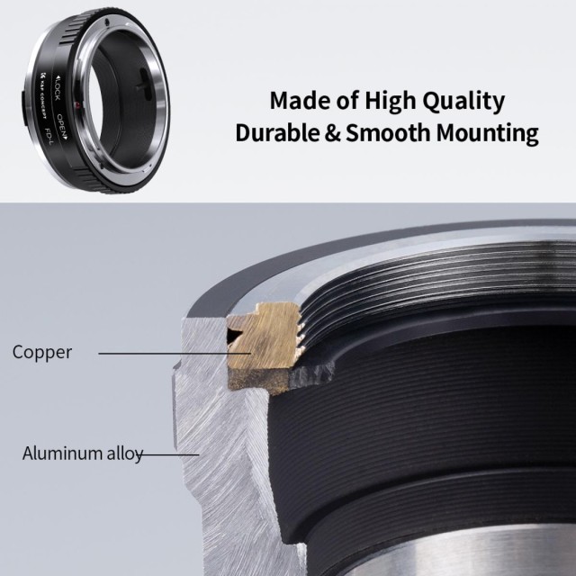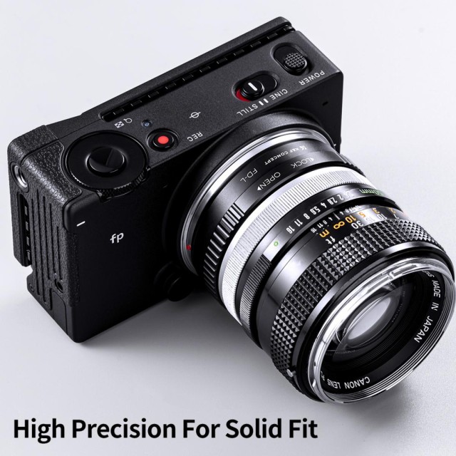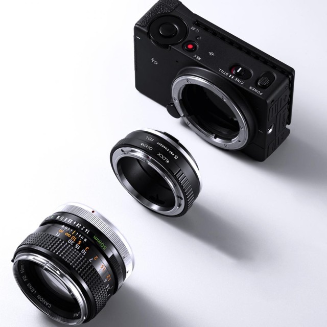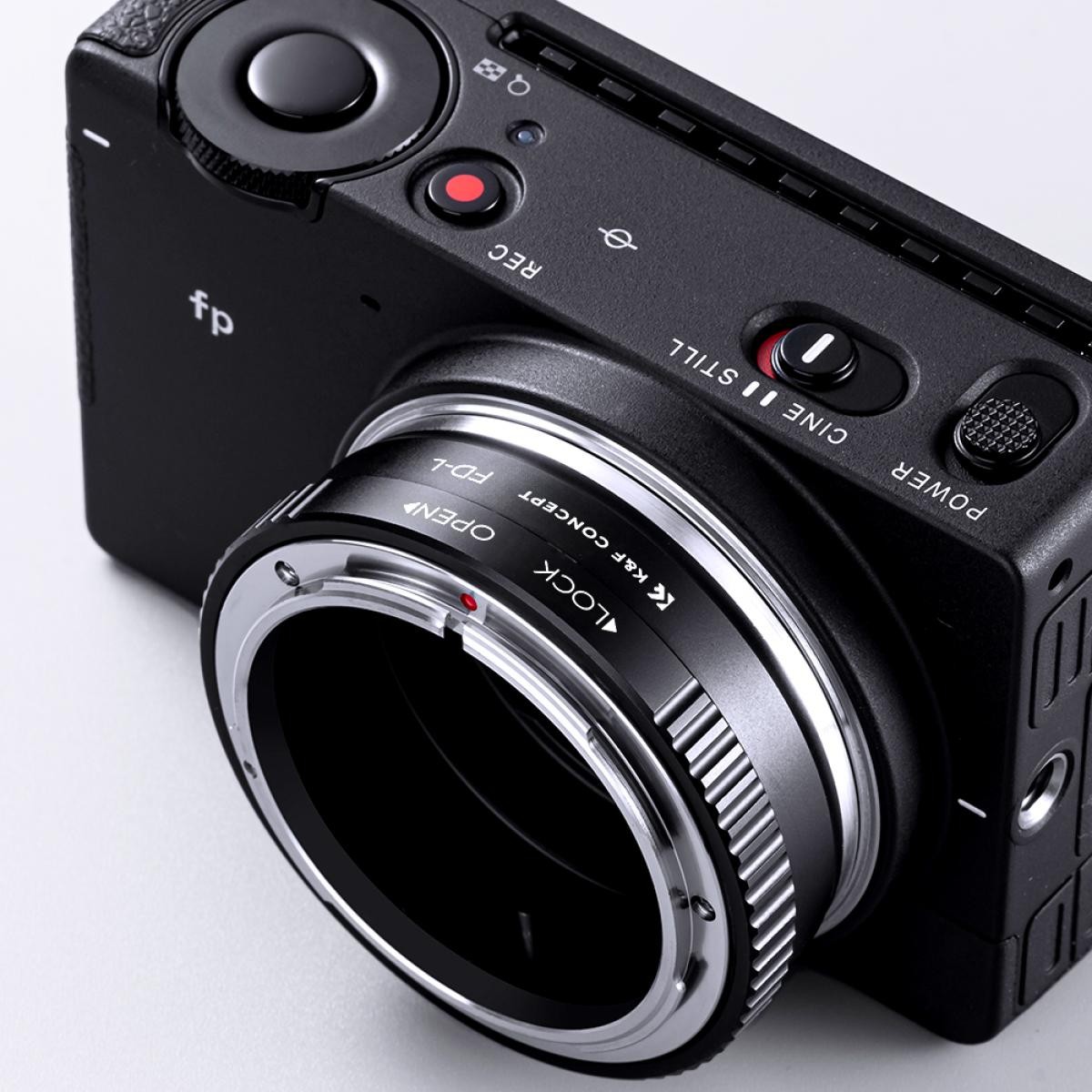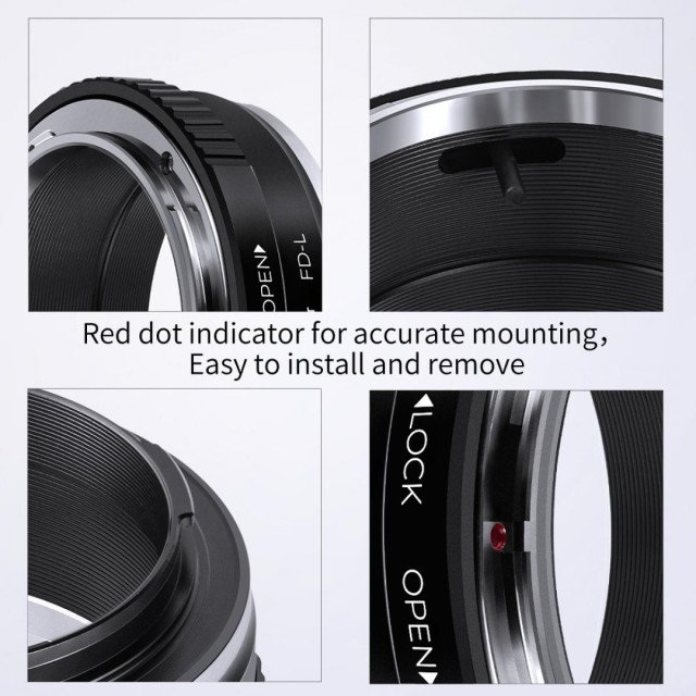 A K&F Concept FD-L manuális fókuszáló adapter kompatibilis a Canon FD & FL objektívekkel az L Mount bajonettes fényképezőgépekhez.