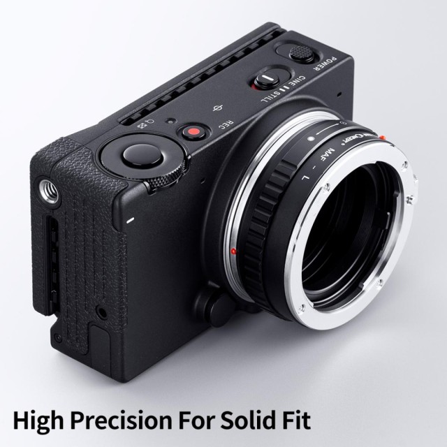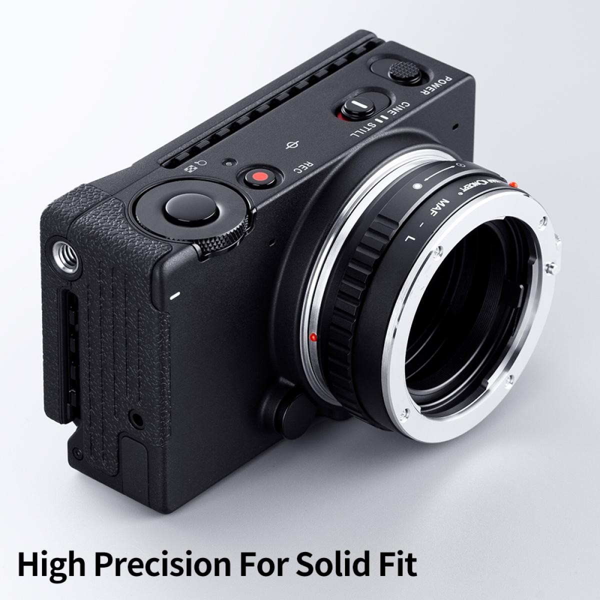 A K&F nagy pontosságú objektívadapter MAF-L azoknak a fotósoknak készült, akik régebbi vagy harmadik féltől származó objektíveket szeretnének használni L-mount tükör nélküli fényképezőgépeken. Prémium minőségű rézből és alumíniumötvözetből készült, tartós, sima és kényelmes felszerelést és leszerelést biztosít. A piros pontos igazító rendszer minden alkalommal pontos felszerelést biztosít, míg a szoros bajonettcsatlakozás kiküszöböli a remegést, így stabil felvételek készíthetők. A teljesen manuális működés lehetővé teszi a fókusz és az expozíció szabályozását, és támogatja a végtelen fókuszt is. Az adapter használatához a fényképezőgépet manuális módba kell állítani. Ez a sokoldalú adapter kibővíti a kreatív lehetőségeket azáltal, hogy összeköti a klasszikus optikát a modern L-mount digitális fényképezőgépekkel.