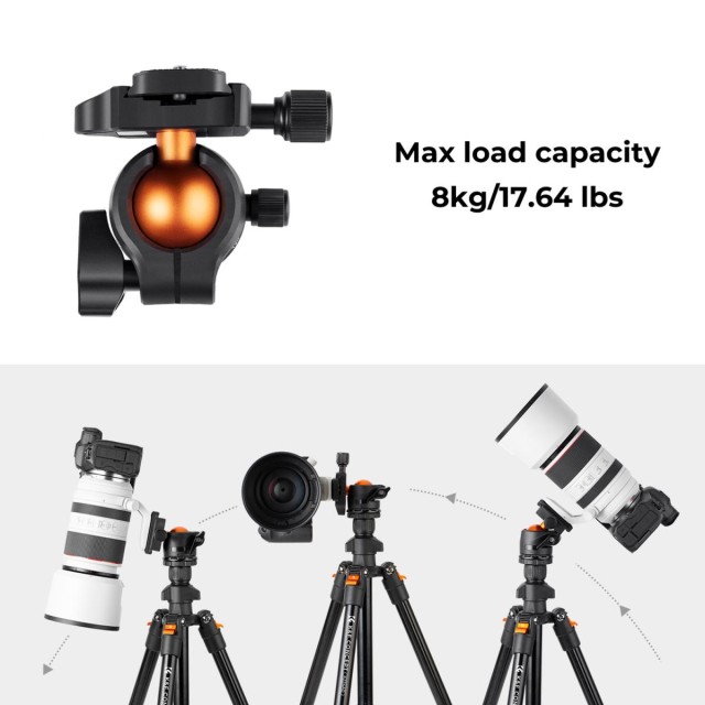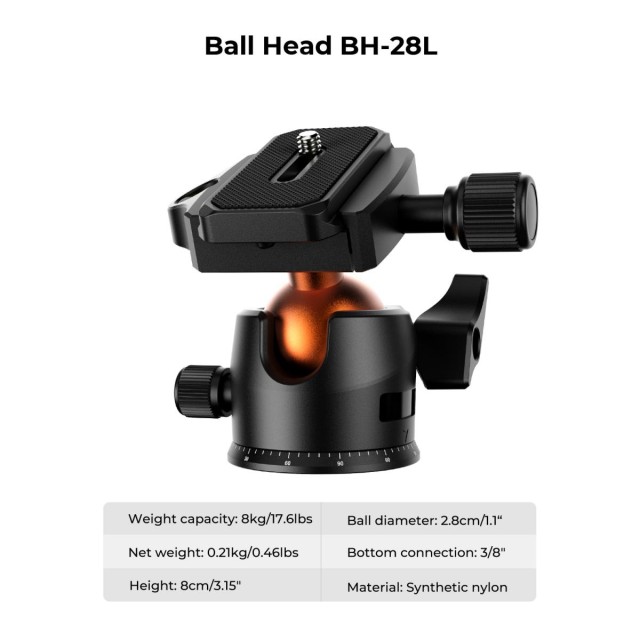 - * 【360° PANORÁMA】A 28 mm-es nagyméretű KF-28 fém gömbfej 17,64 £ / 8 kg teherbírást biztosít, 360 fokban elforgatható, segítve a DSLR fényképezőgép tevékenységi körének bővítését panorámaképek készítésekor.