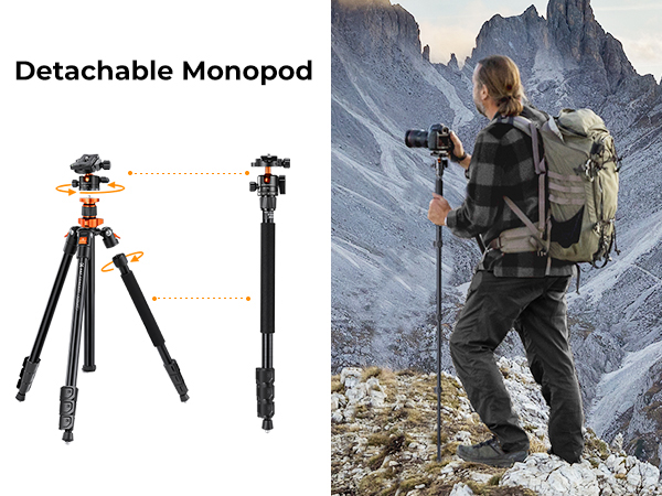 2.Levehető monopod:Egyedül is könnyű monopoddá vagy sétapálcává alakítható, hogy a fotózás változatosabbá váljon.