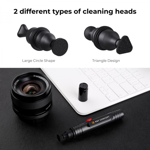 A K&F Concept Dual-Tip Cleaning Pen biztonságos és hatékony módszert kínál a por, foltok és ujjlenyomatok eltávolítására a fényképezőgépek lencséiről, képernyőiről és érzékeny optikai felületeiről. Behúzható puha kefével és kétvégű tisztítófejjel ellátott, kompakt eszközzel biztosíthatja fényképezőgépek, okostelefonok és egyéb eszközök makulátlan tisztaságát.