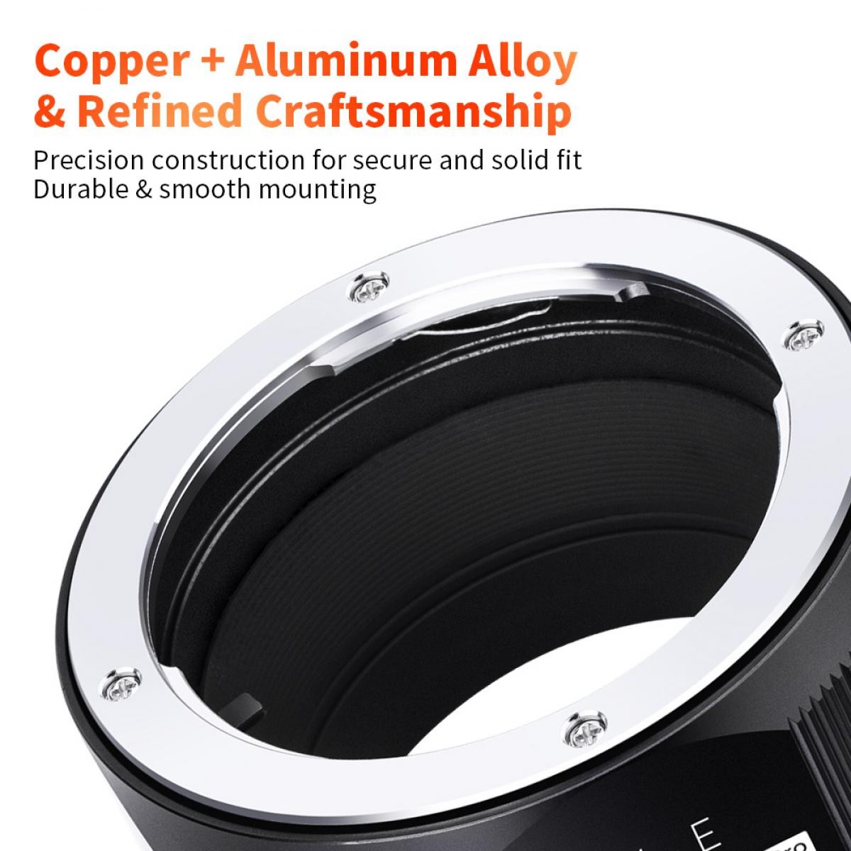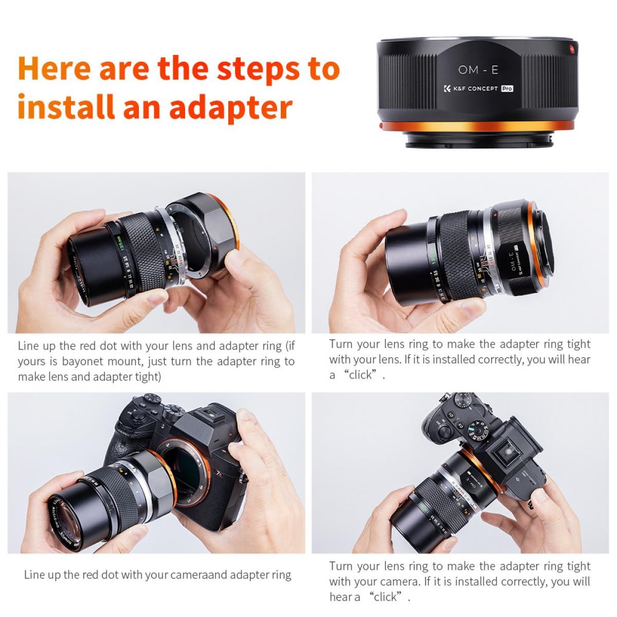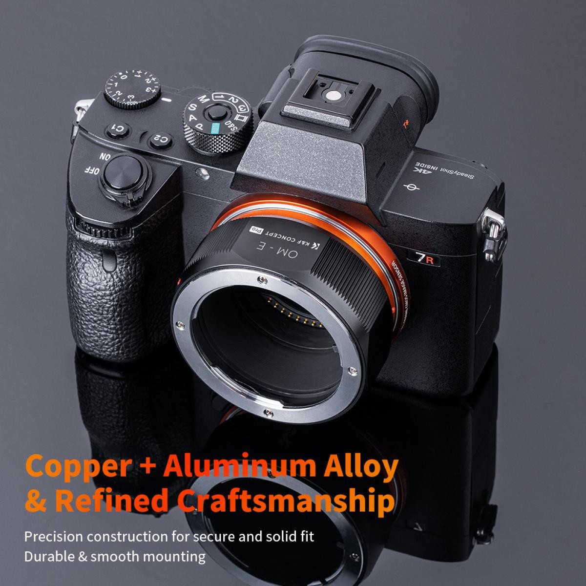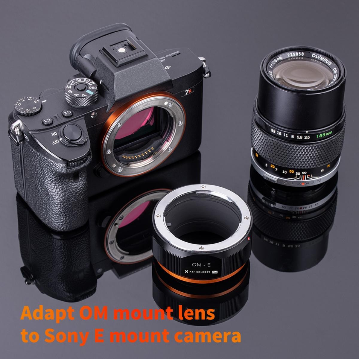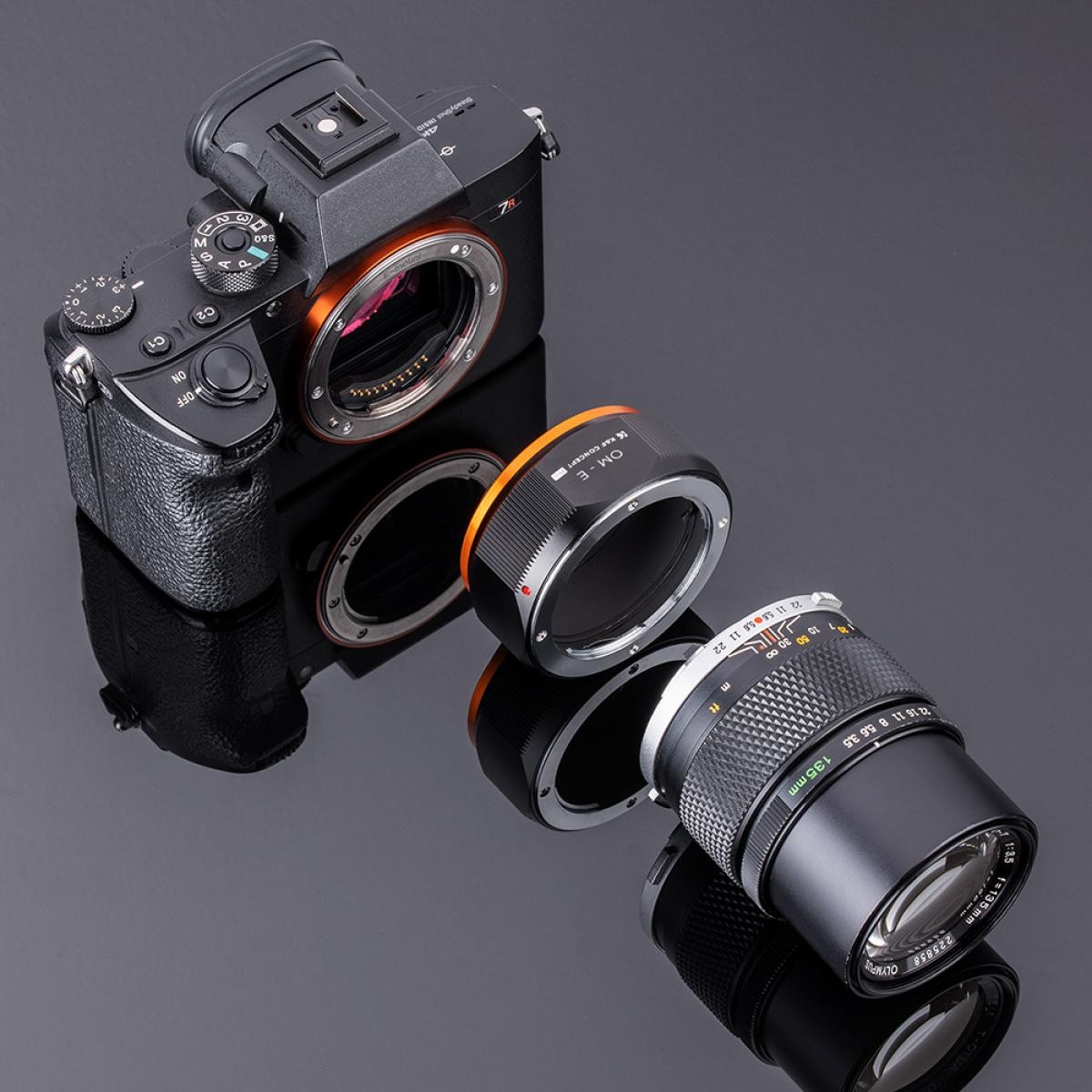 A K&F Concept OM-NEX manuális fókuszáló adapter kompatibilis az Olympus OM objektívekkel, amelyek Sony E-Mount bajonettes fényképezőgépekhez készültek.