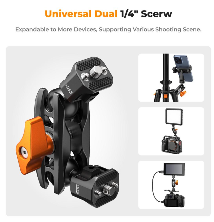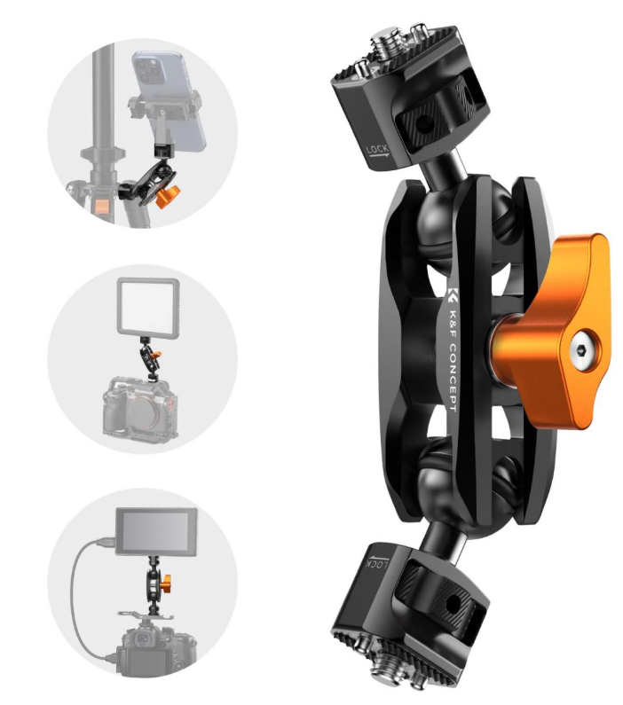 A K&F Concept KF31.082V1 MS14 Magic Arm egy sokoldalú kiegészítő, amelyet a fotózási és videóprodukciós felállások rögzítési lehetőségeinek bővítésére terveztek. Két gömbfejjel és univerzális 1/4"-es csavarokkal ellátva lehetővé teszi számos eszköz – például kamerák, külső monitorok, LED-es lámpák, mikrofonok és egyebek – rögzítését.