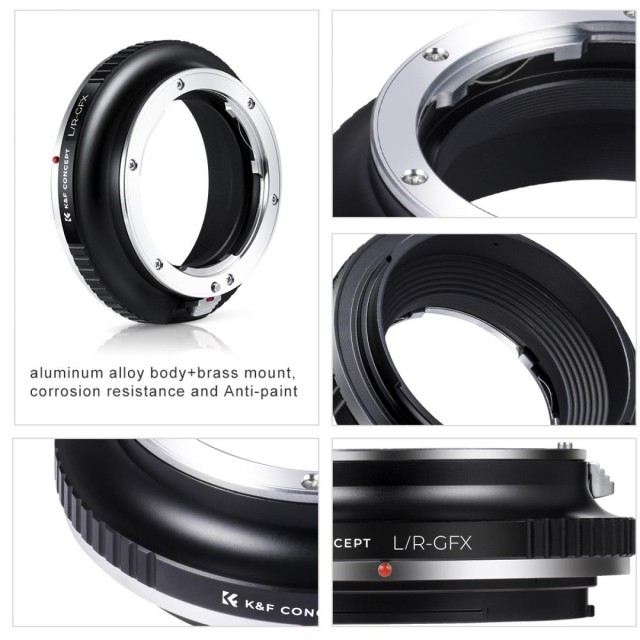 A K&F Leica R–Fuji GFX adapter lehetővé teszi a Leica R objektívek felszerelését a Fuji GFX középformátumú fényképezőgépekre, tartós, teljes egészében fémből készült szerkezettel és sima kézi működtetéssel.