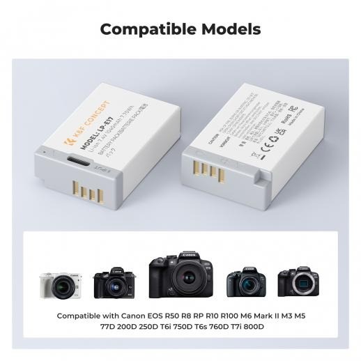 1040mAh Erőteljes akkumulátor kapacitás. A K&F Concept 2-Pack LP-E17 akkumulátorok hosszan tartó energiát biztosítanak a hosszabb fényképezéshez. Teljesen dekódolt csereakkumulátor. Ez az LP-E17 akkumulátor széles körben kompatibilis a Canon EOS R10, EOS M6 Mark II, Rebel SL2, T6i, T6s, T7i, EOS 200D 750D 760D 77D, 800D 8000D KISS X8i digitális tükörreflexes fényképezőgépekkel. Teljesen dekódolt, és nincs felugró figyelmeztetés a fényképezőgépen.