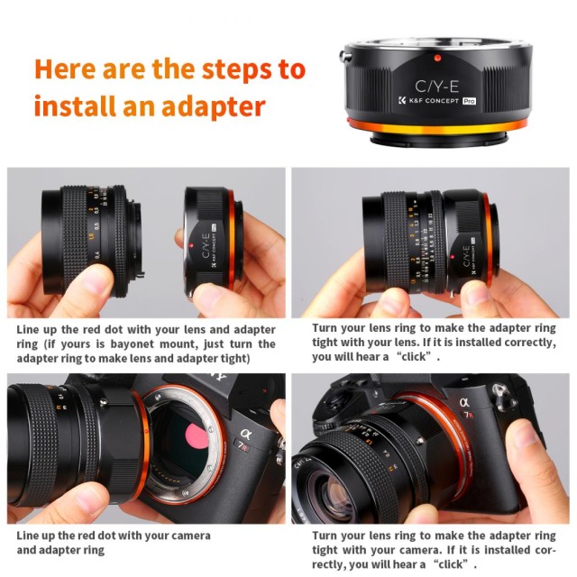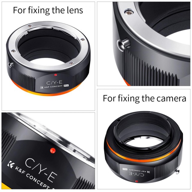 A K&F Concept C/Y-NEX manuális fókuszáló adapter kompatibilis a Contax / Yashica (C/Y) objektívekkel a NEX E-Mount bajonettes fényképezőgépekhez.