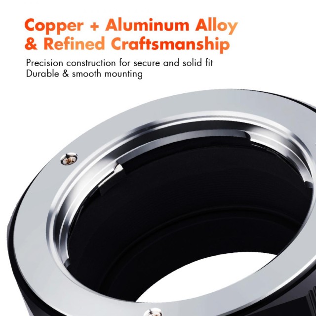 A K&F M15115 nagy pontosságú objektívadapter-csatlakozó lehetővé teszi a Minolta MD/MC tükörreflexes objektívek Fujifilm X-sorozatú tükör nélküli fényképezőgépekre történő felszerelését, teljes manuális fókusz- és expozícióvezérlést biztosítva.