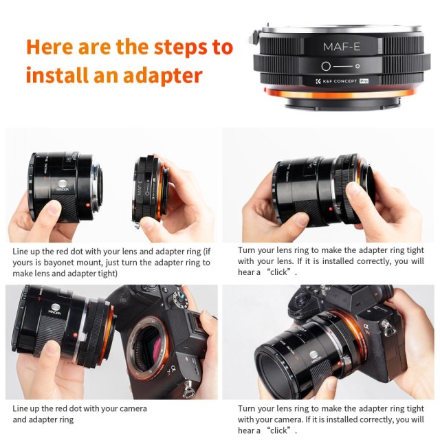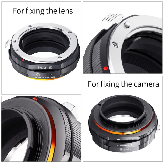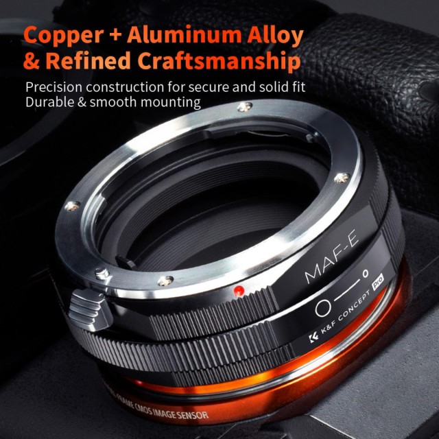 A K&F Concept MAF-NEX manuális fókuszáló adapter kompatibilis a Sony Alpha Minolta AF A-Type objektívekkel, amelyek NEX E-Mount bajonettes fényképezőgépekhez készültek.