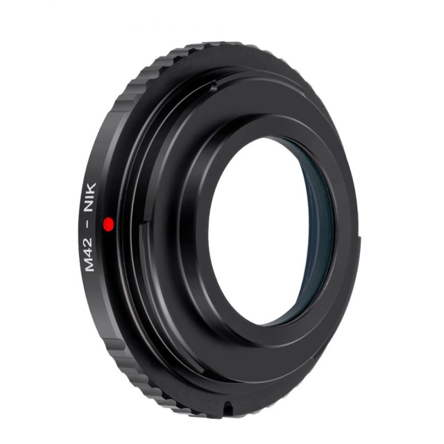 A K&F M42-Nikon objektívadapter optikai üveggel lehetővé teszi az M42-es bajonettes objektívek használatát Nikon DSLR fényképezőgépeken. Tartós réz- és alumínium szerkezettel, precíz kézi működtetéssel és integrált optikai üveggel rendelkezik a végtelen fókuszáláshoz.