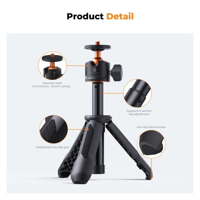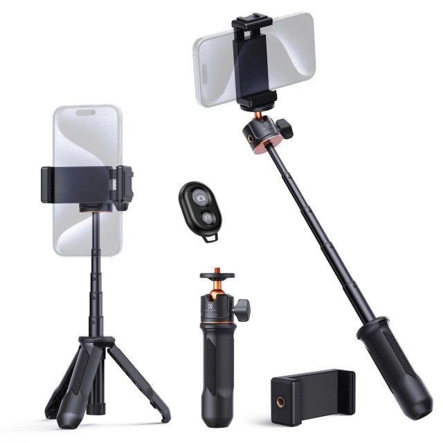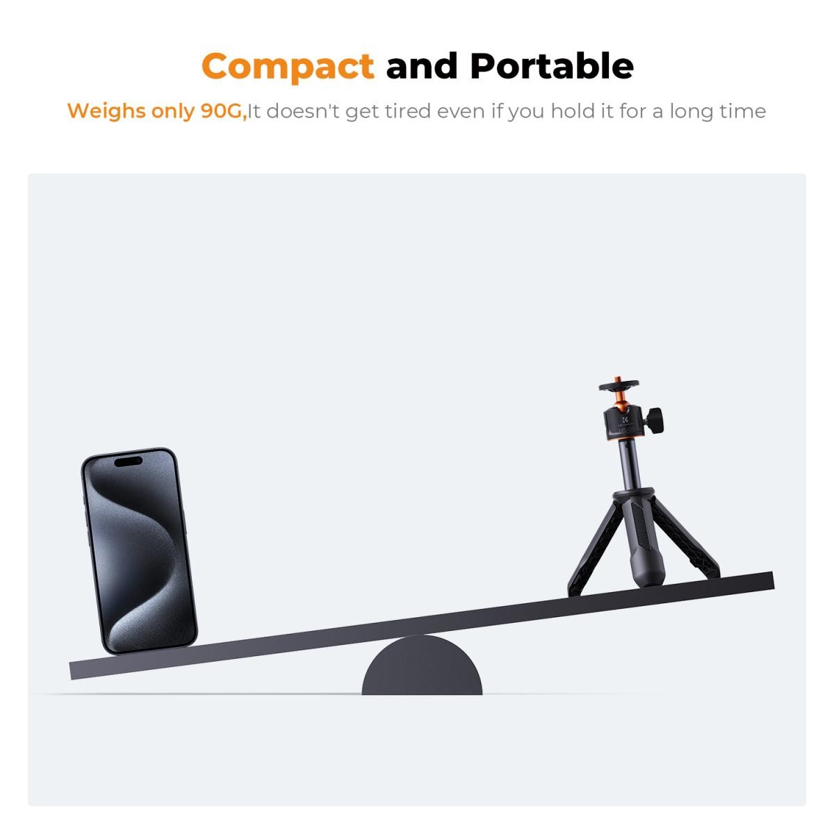MS02 mobiltelefon állvány / 34 cm-es mobiltelefon állvány távirányítóval, fekete-narancssárga. Maximális magassága 34 cm, 5 szakaszos lábszabályozással rendelkezik, így a kívánt magasságot tetszés szerint beállíthatja. Az állványfej 2 kg teherbírással rendelkezik, és a legtöbb tükör nélküli fényképezőgép, mobiltelefon állvány távirányítóval és egyéb berendezések igényeinek megfelel.