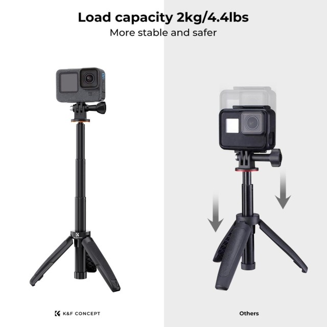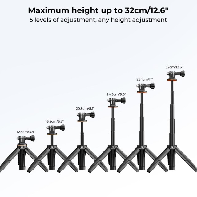 Akciókamera tartó Selfie Stick asztali állvány (kis méret) Gopro, Action és Insta kamerákhoz Fekete narancssárga. A telefonos kis állvány szélesített rögzített szerkezetet és csúszásmentes szilikont fogad el. A módosított cső beépített ütéscsillapító gumigyűrűvel rendelkezik, így az egész feszített cső stabilabb és erősebb. párna az alján a stabilabb alátámasztás érdekében.