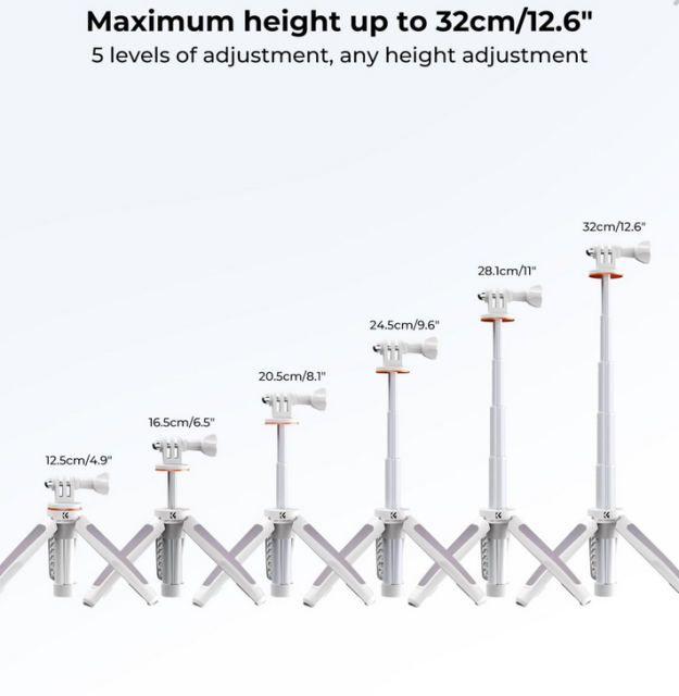 A K&F MS03 okostelefonos állvány narancssárga-szürke színben egy sokoldalú és hordozható megoldás a fotózási és videózási igényekhez. A 32 cm-es maximális magassággal és az 5 szakaszos lábállítással könnyedén beállíthatja a kívánt magasságra. Ez az állványfej 2 kg terhelhetőséget támogat, így alkalmas GoPro, DJI Osmo Action és Insta 360 eszközökhöz. Beépített…